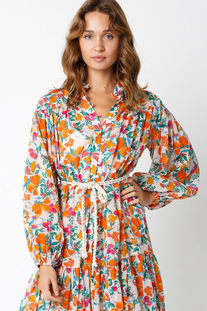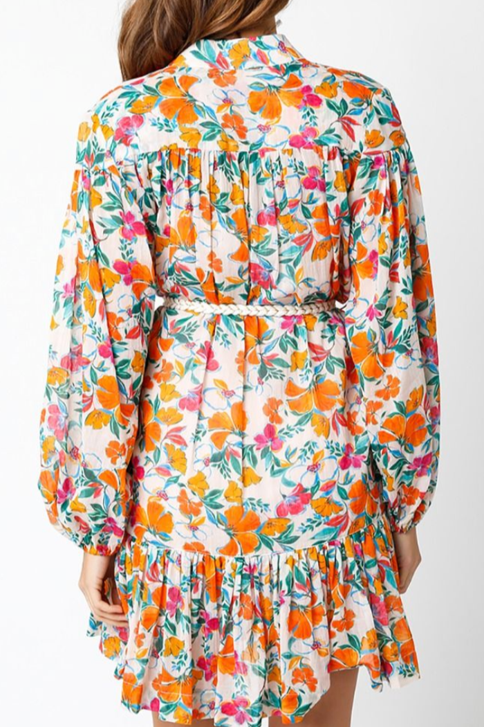 This dress features a button down as well as the widely popular and trendy puff sleeves. The braided tie belt around the waist brings everything together to complete the look. Would look best with heels or boots.