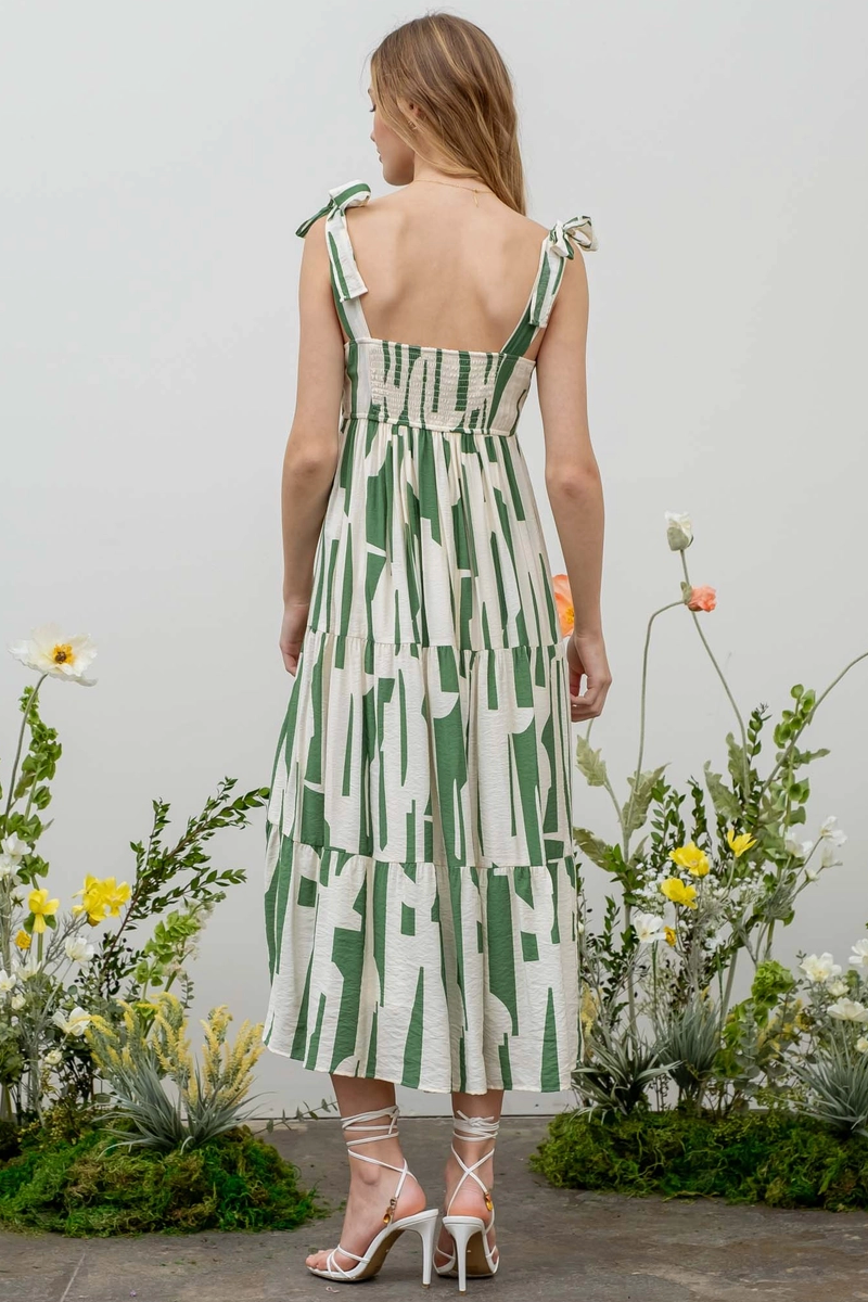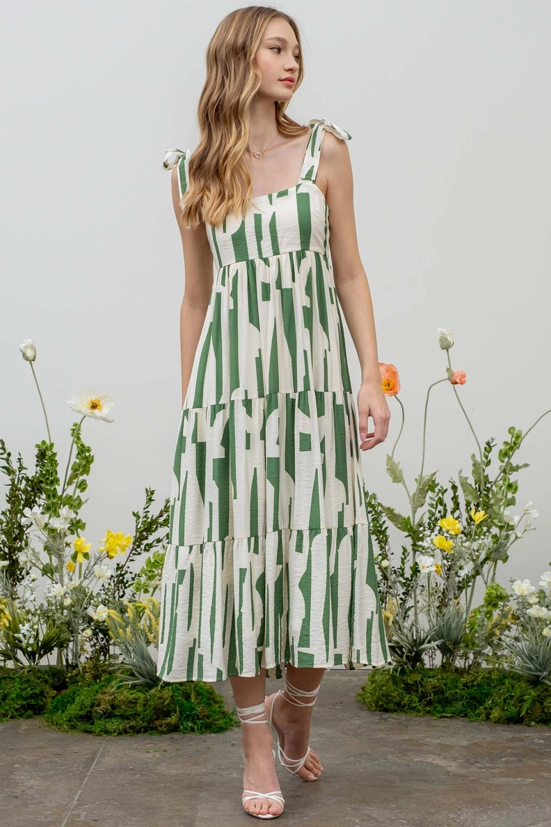 Tiered Abstract Print Midi Dress
