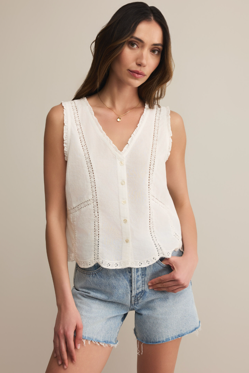 Add a touch of artisanal charm to your wardrobe with the Tomi Embroidered Tank! Crafted from lightweight, breathable fabric, it features intricate embroidery that brings a pop of texture and detail to a simple silhouette. The regular fit and sleeveless design make it perfect for layering or wearing solo on sunny days. Pair it with denim, skirts, or shorts for an effortlessly stylish look with a boho-luxe twist.