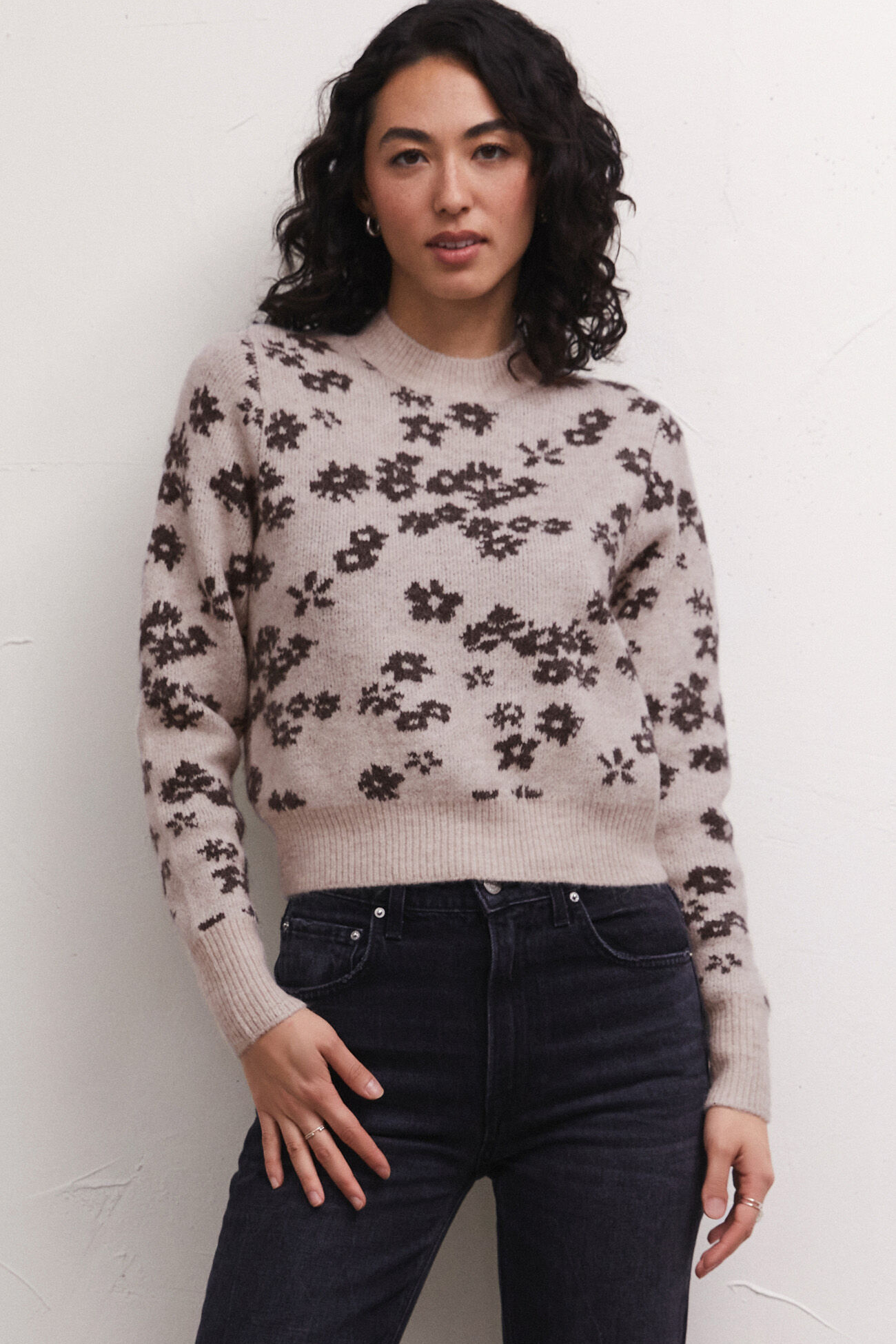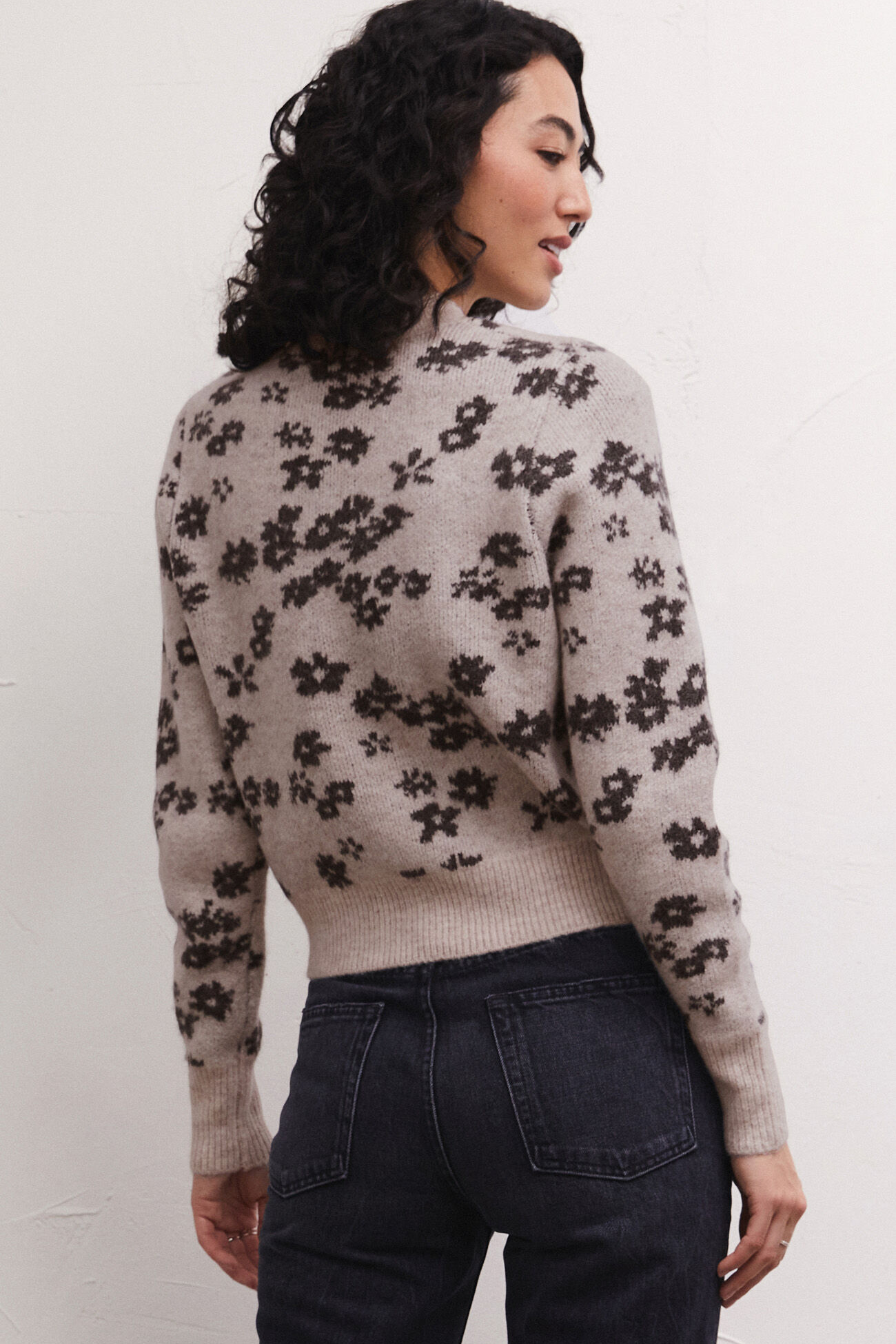 Feminine florals are front and center this season with the eye-catching intarsia Tory Sweater. Made using our new plush sweater yarns, this regular mock neck sweater with fitted bottom band features an abstract floral print that takes it from everyday to special occasion.