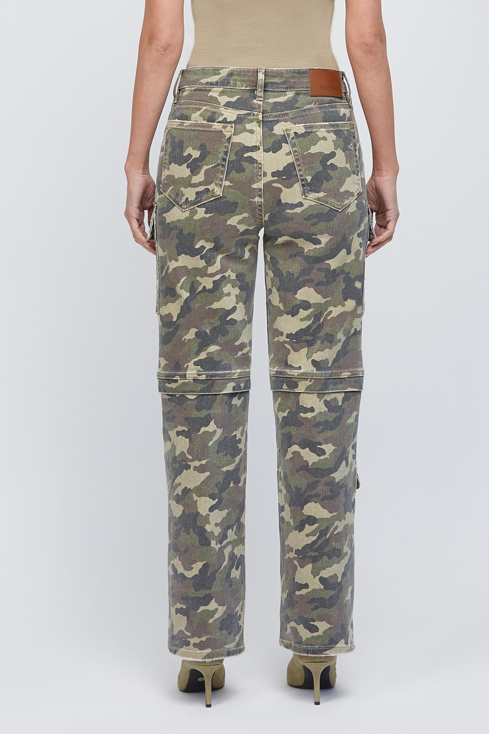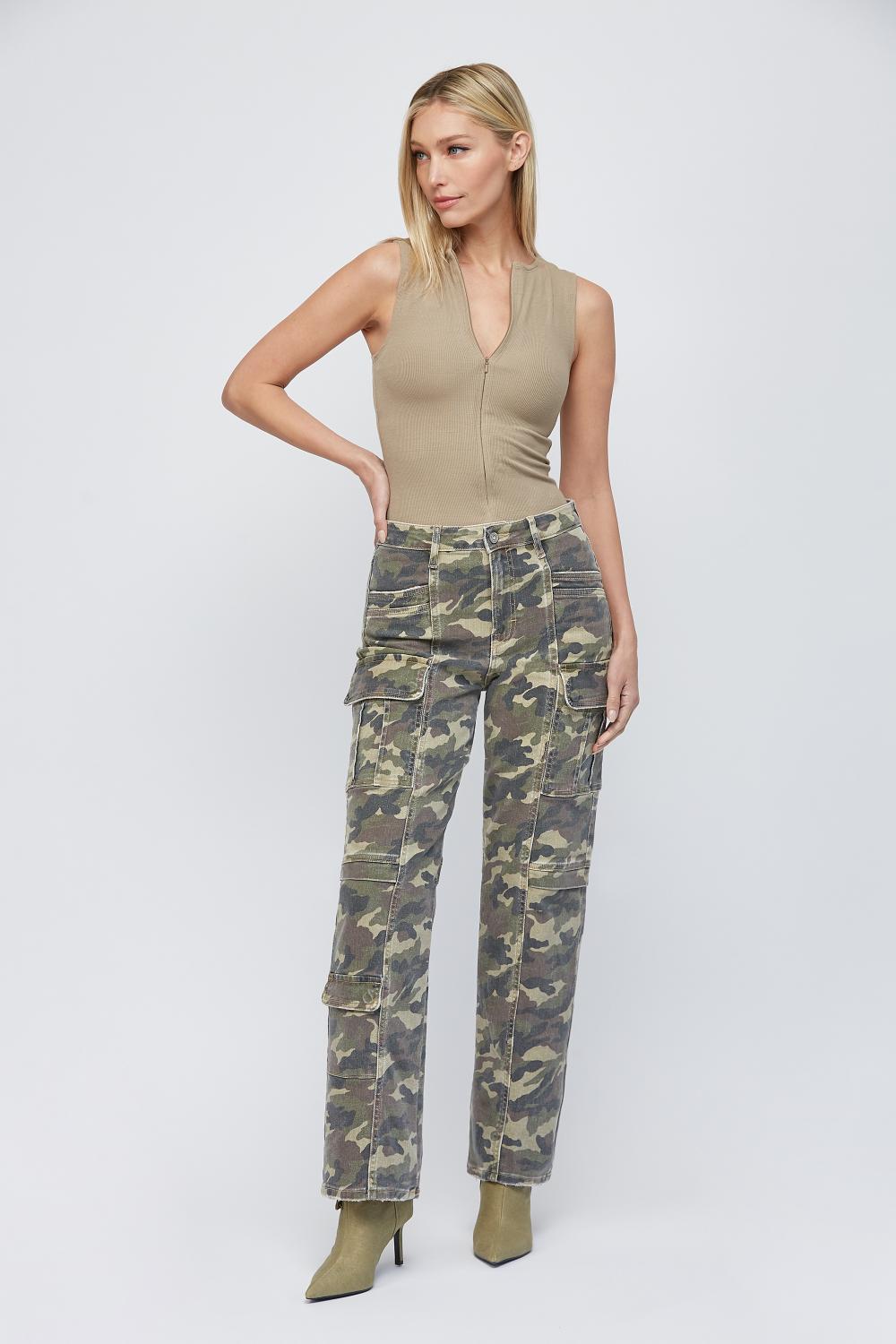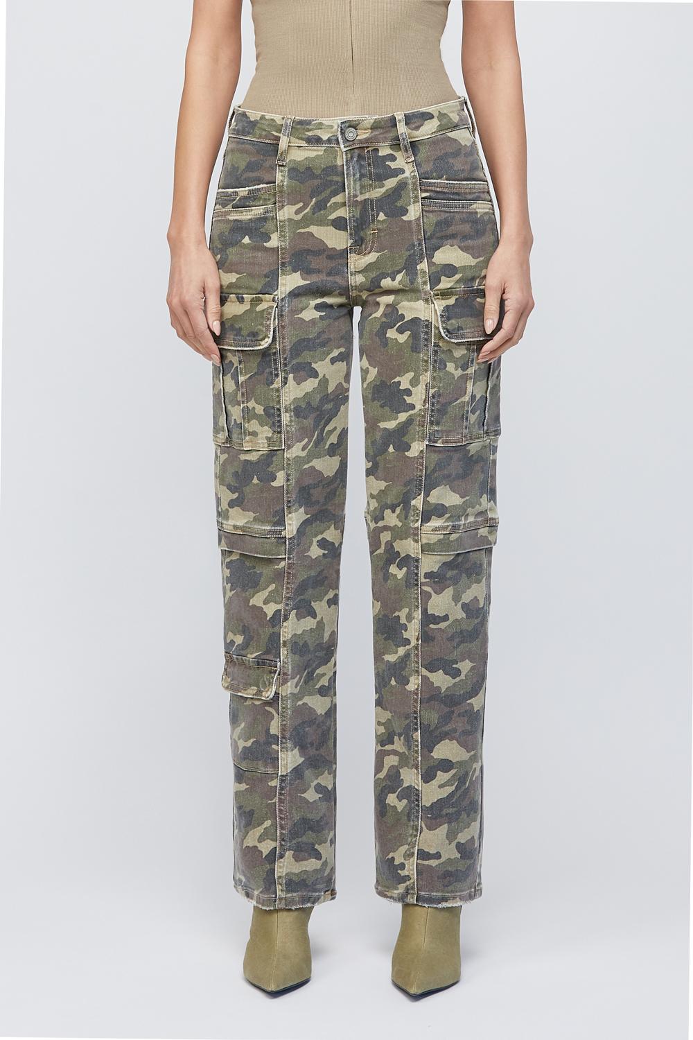 Cargo pants, straight leg and high rise. Pockets galore as they should be for cargo style. Pair with style # HD144J-CAM