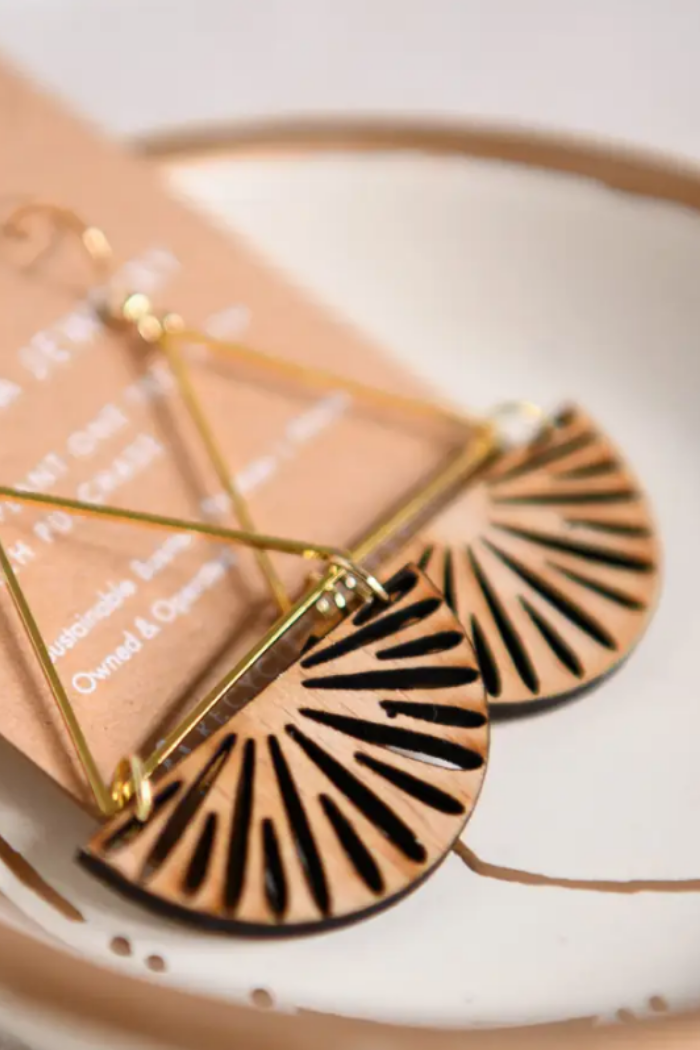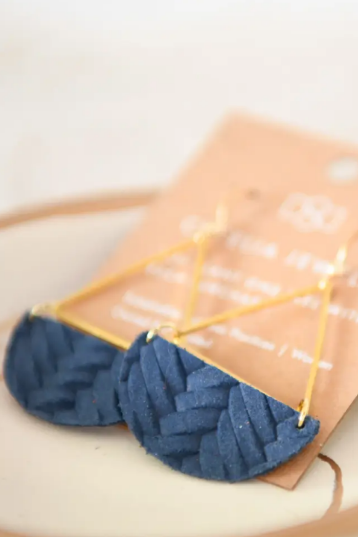 Explore our collection of unique and stylish leather half-moon and triangle earrings. Lightweight and comfortable, these earrings are a must-have for anyone who loves unique, eye-catching jewelry. Handmade in Minnesota. You plant one tree with each purchase.