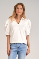 Try a new style with this hoodie top! This top has puff sleeves as well as a soft material to stay comfortable in.