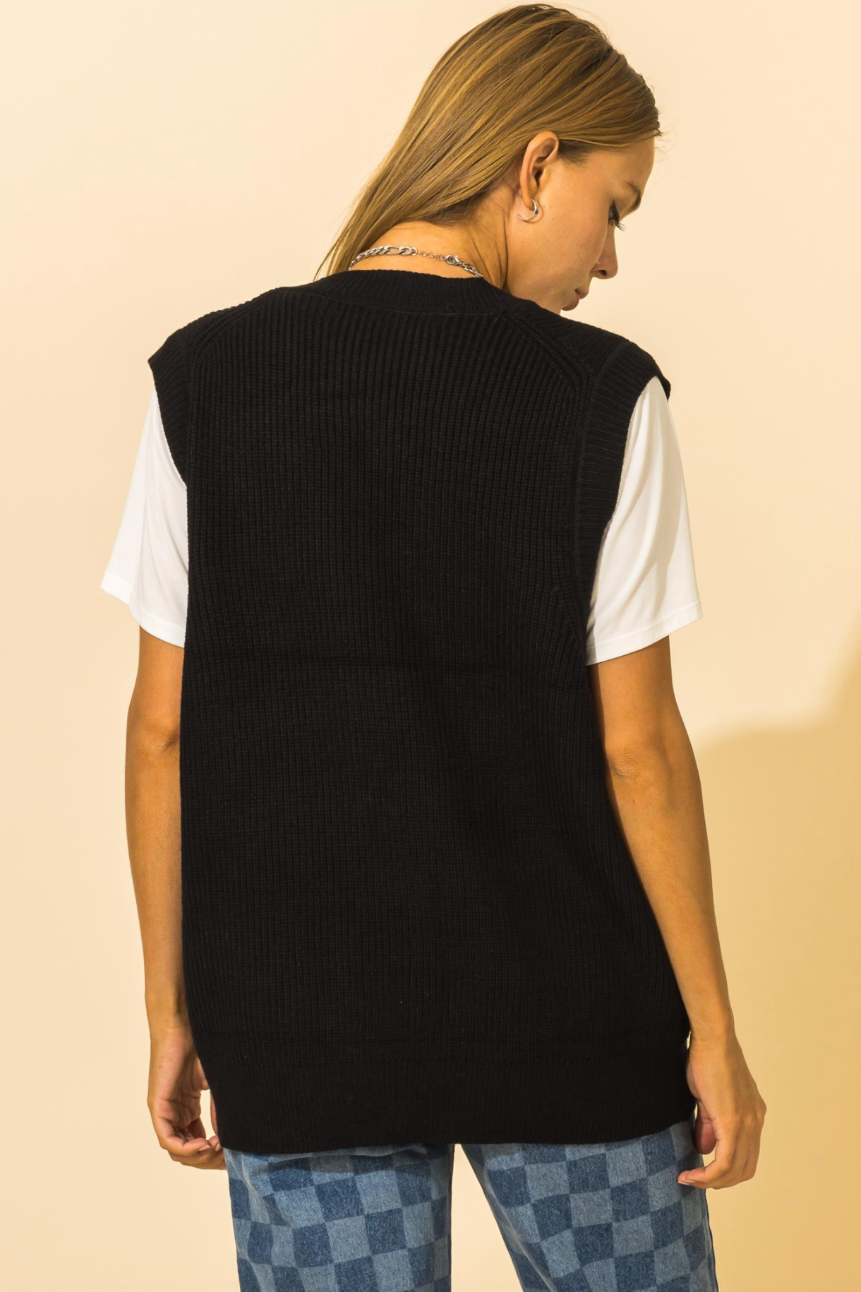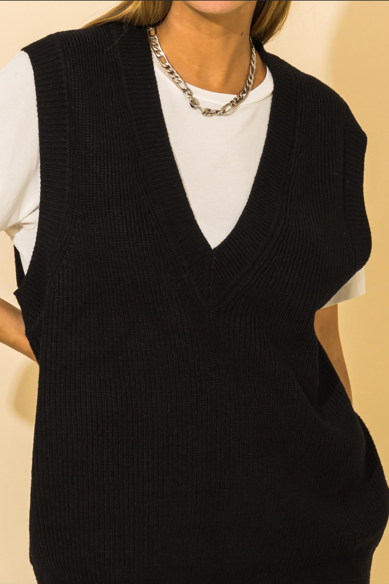 Oversized sweater vests are all the rage. Great with a fitted long sleeve underneath and some leggings and nice fall boots.