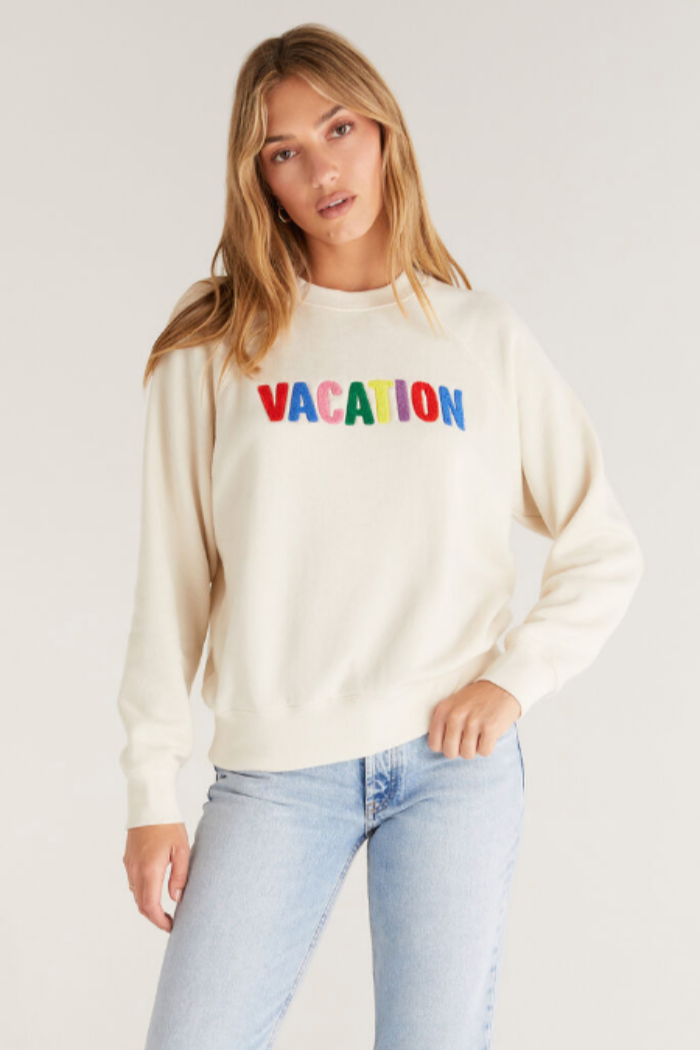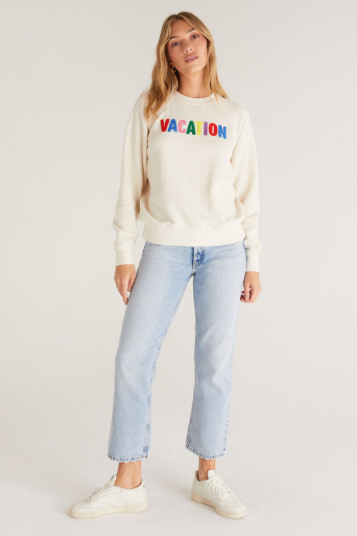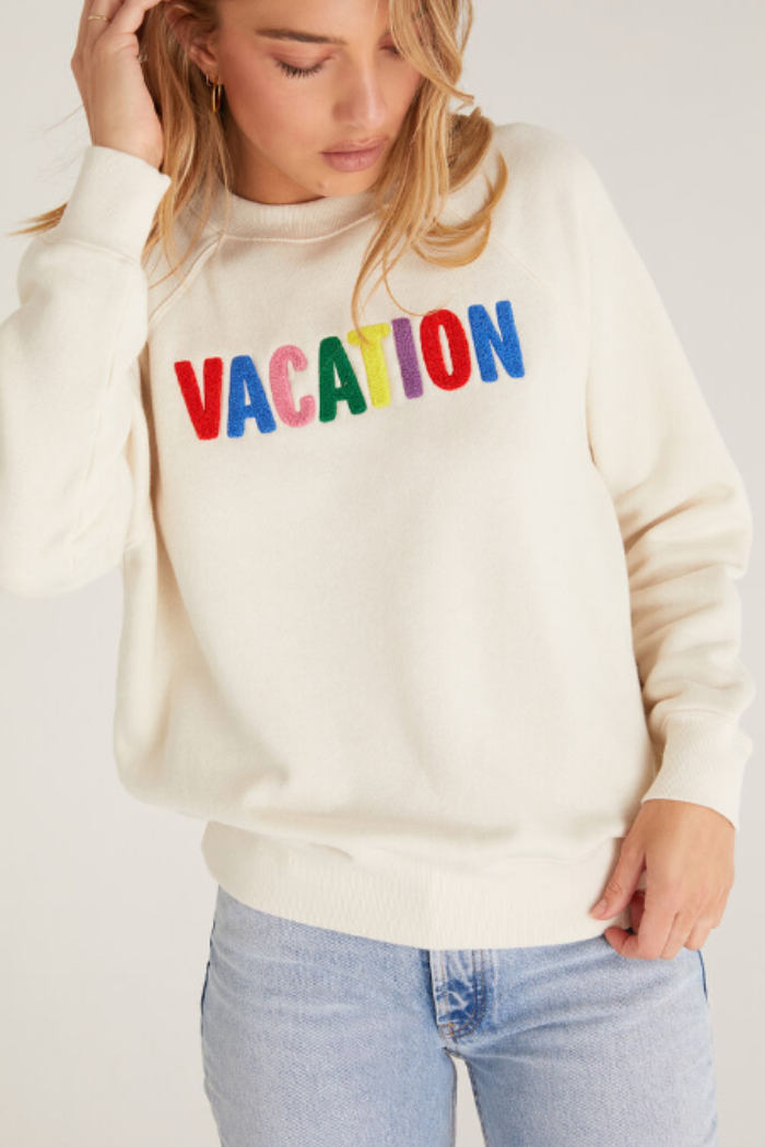 We're in a vacay state of mind! The Vacation Sweatshirt is made in our softer Cotton Fleece fabric and features the word ‘vacation' embroidered in chenille on the front in bright, multicolor letters. It's the perfect everyday layer to add a dose of color.