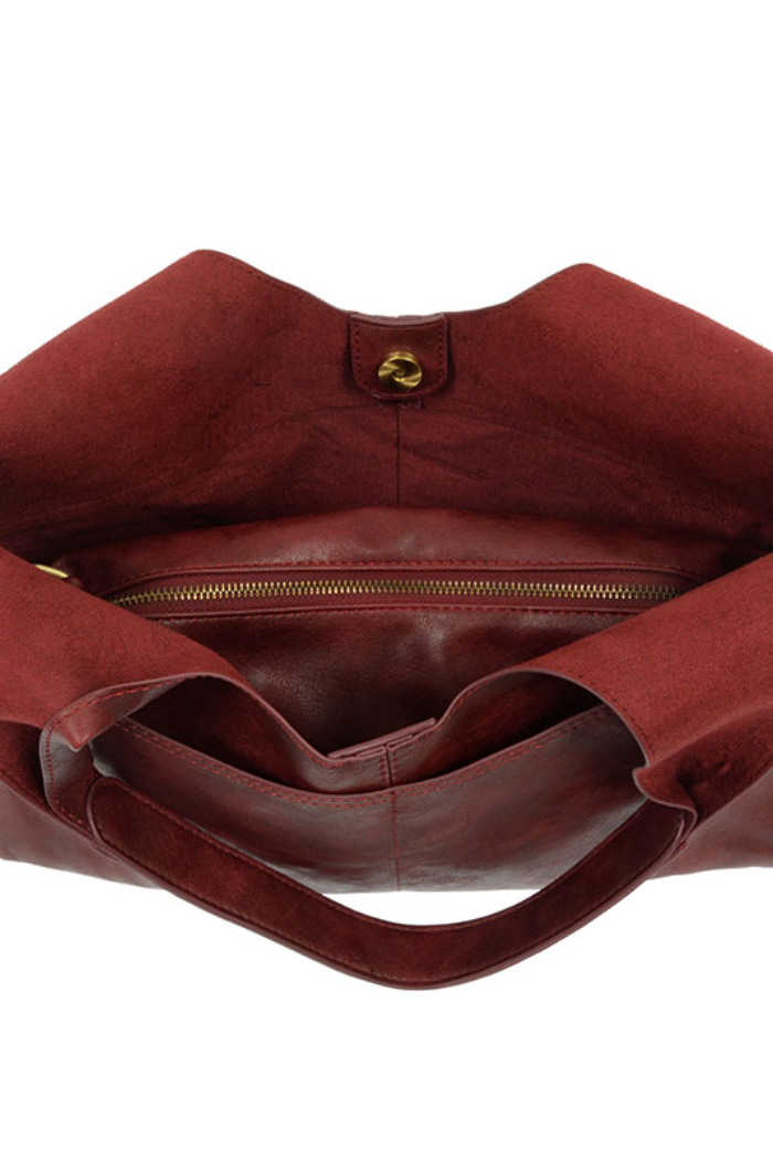 Form meets function in this striking vegan leather hobo bag, featuring plenty of pockets inside and out to keep essentials organized. The roomy interior is enhanced by the removable insert bag to keep your belongings secure. As an added value, you can carry the insert bag separately as a smaller crossbody bag.