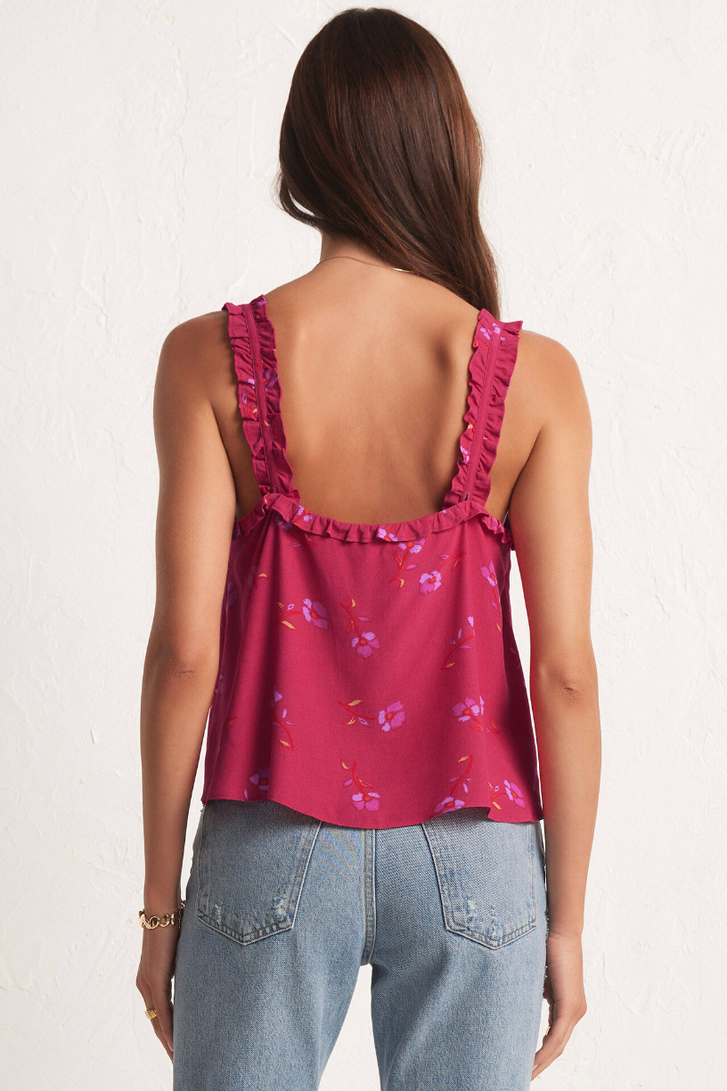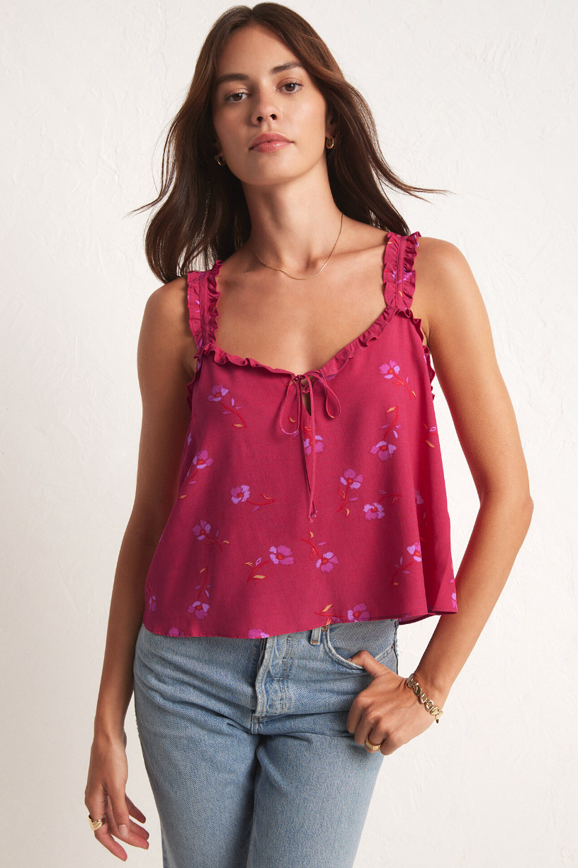 This dreamy tank is a great option to your outfit if you have a soft and feminine style. The ruffles and flowy silhouette makes this top elegant and lightweight.