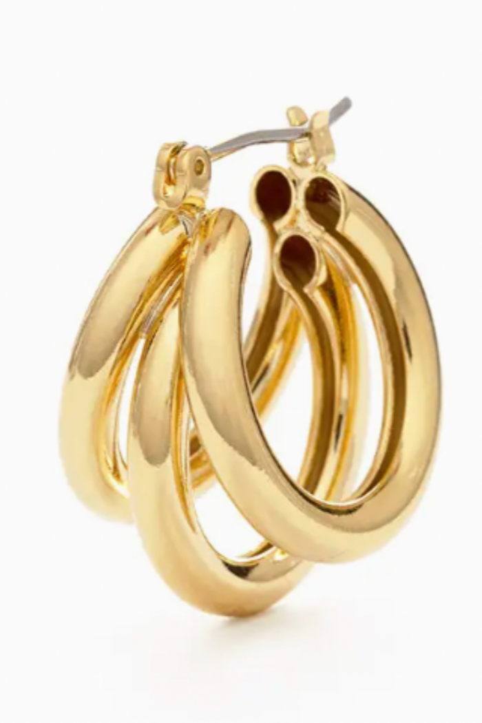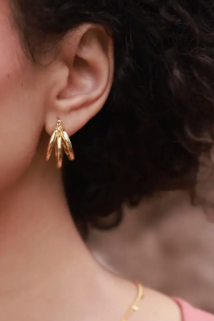 Stylish estential for a vintage cool vibe. 14k gold plated brass with surgical steel ear wires.
