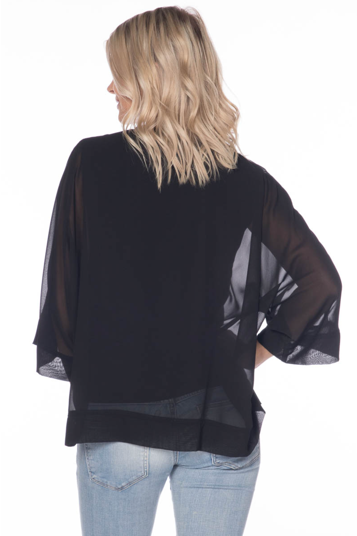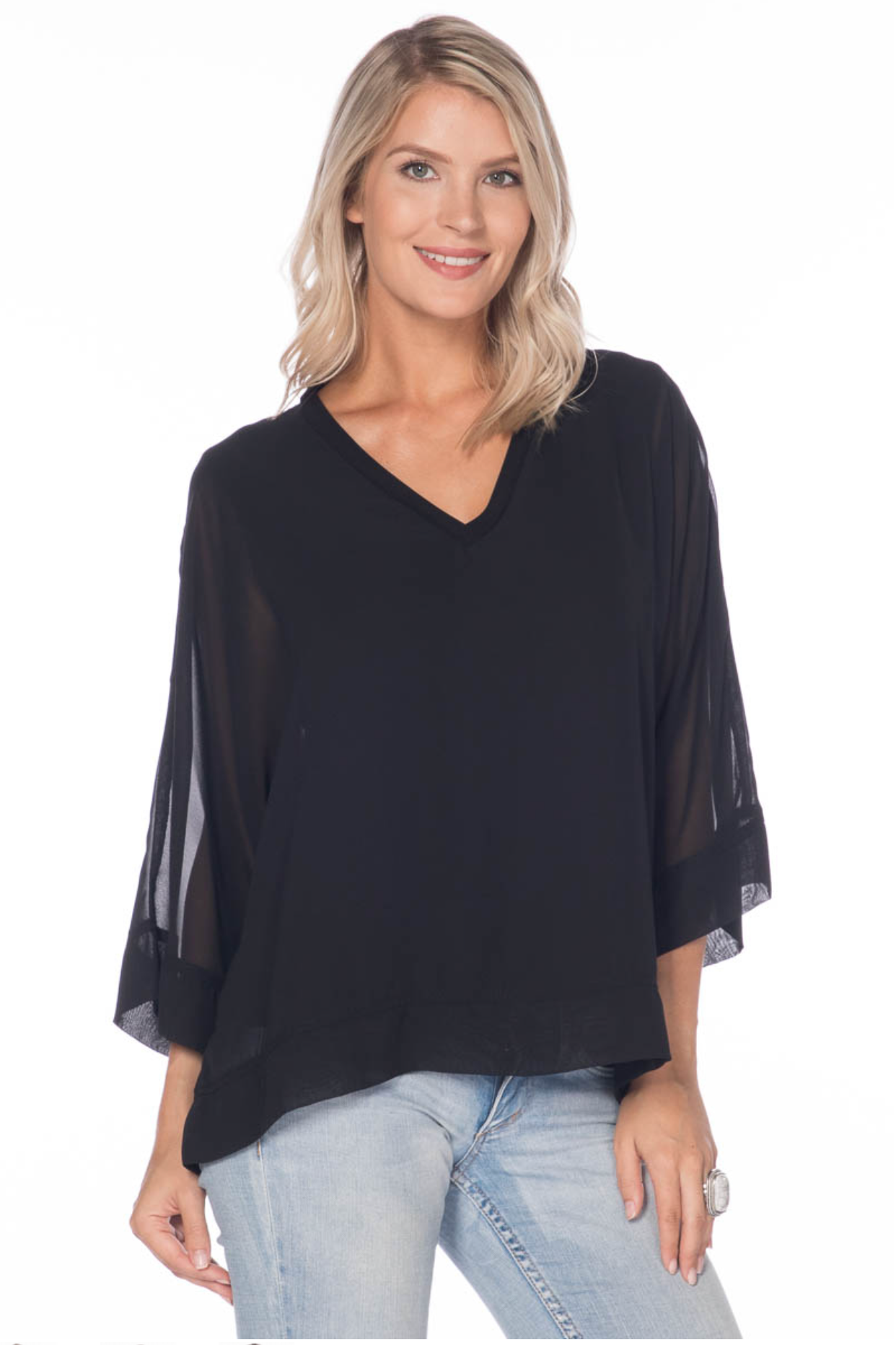 This top is sheer elegance. Airy, lightweight chiffon provides an easy and effortless fit that is great for all body types. Attached tank provides coverage and makes this top simple and easy to wear. Loose body and wide dolman sleeves ensure that this top is equally comfortable as it is beautiful. Great for workwear, girl’s night out or date night. The possibilities are endless with this top!