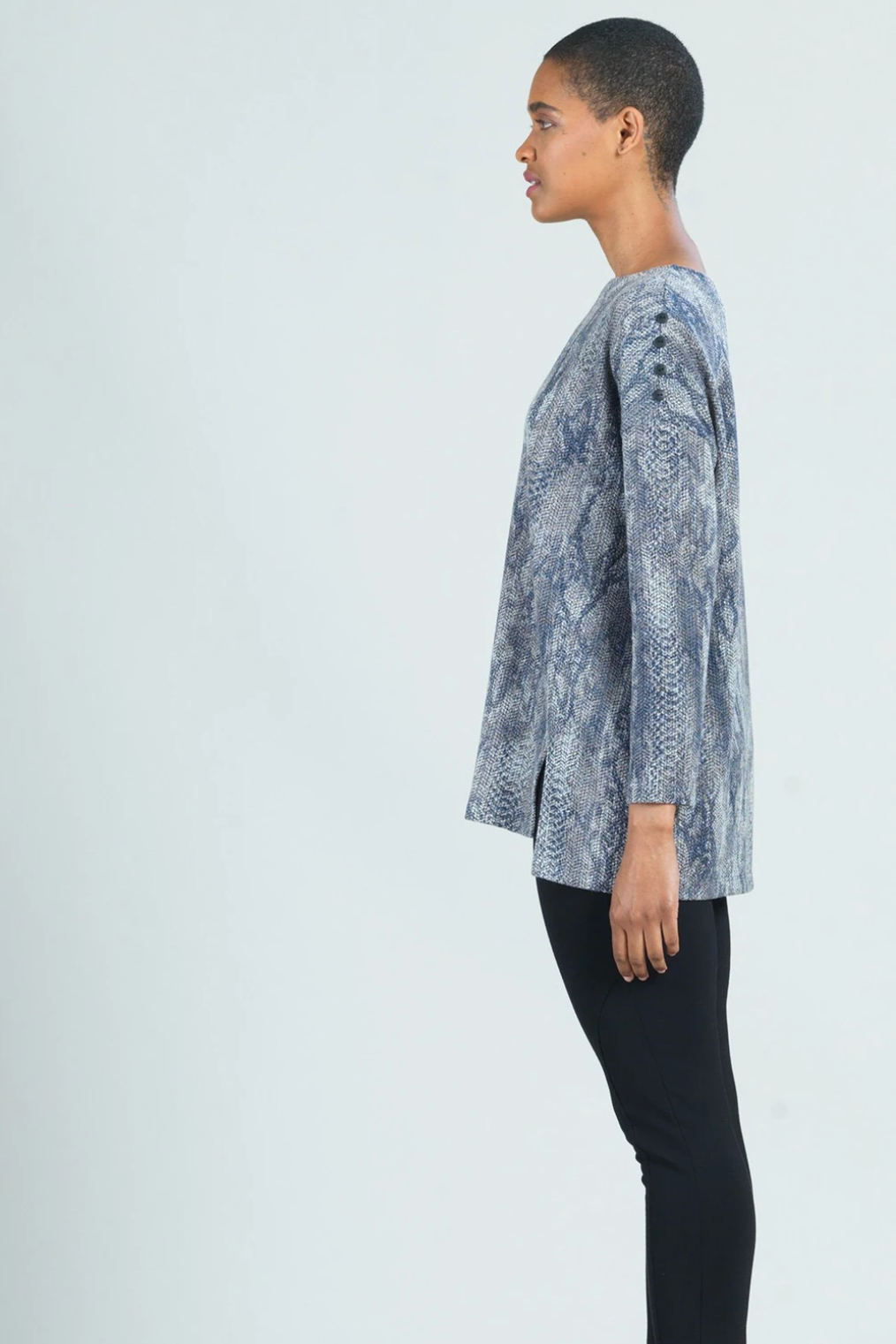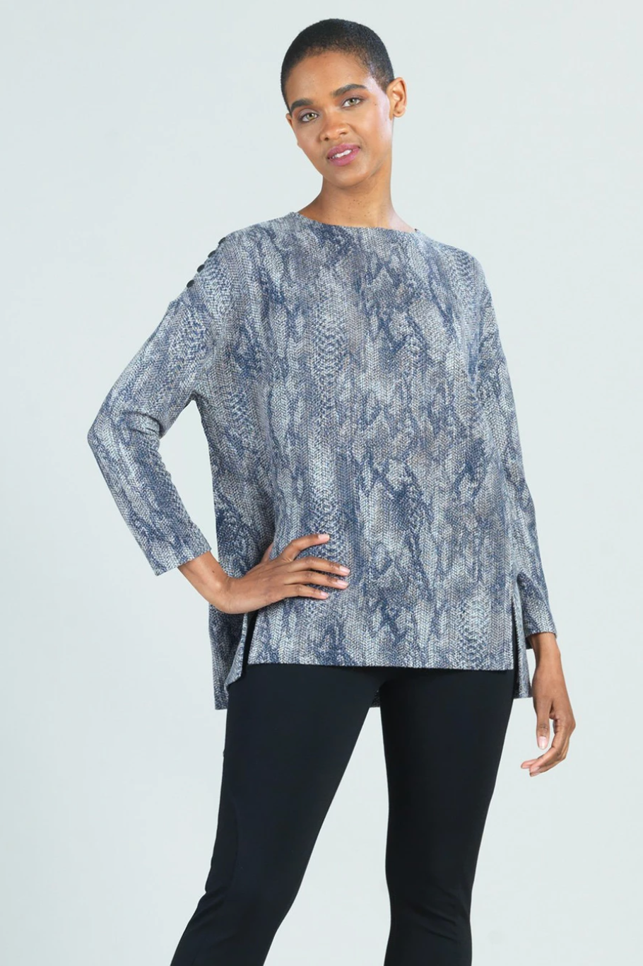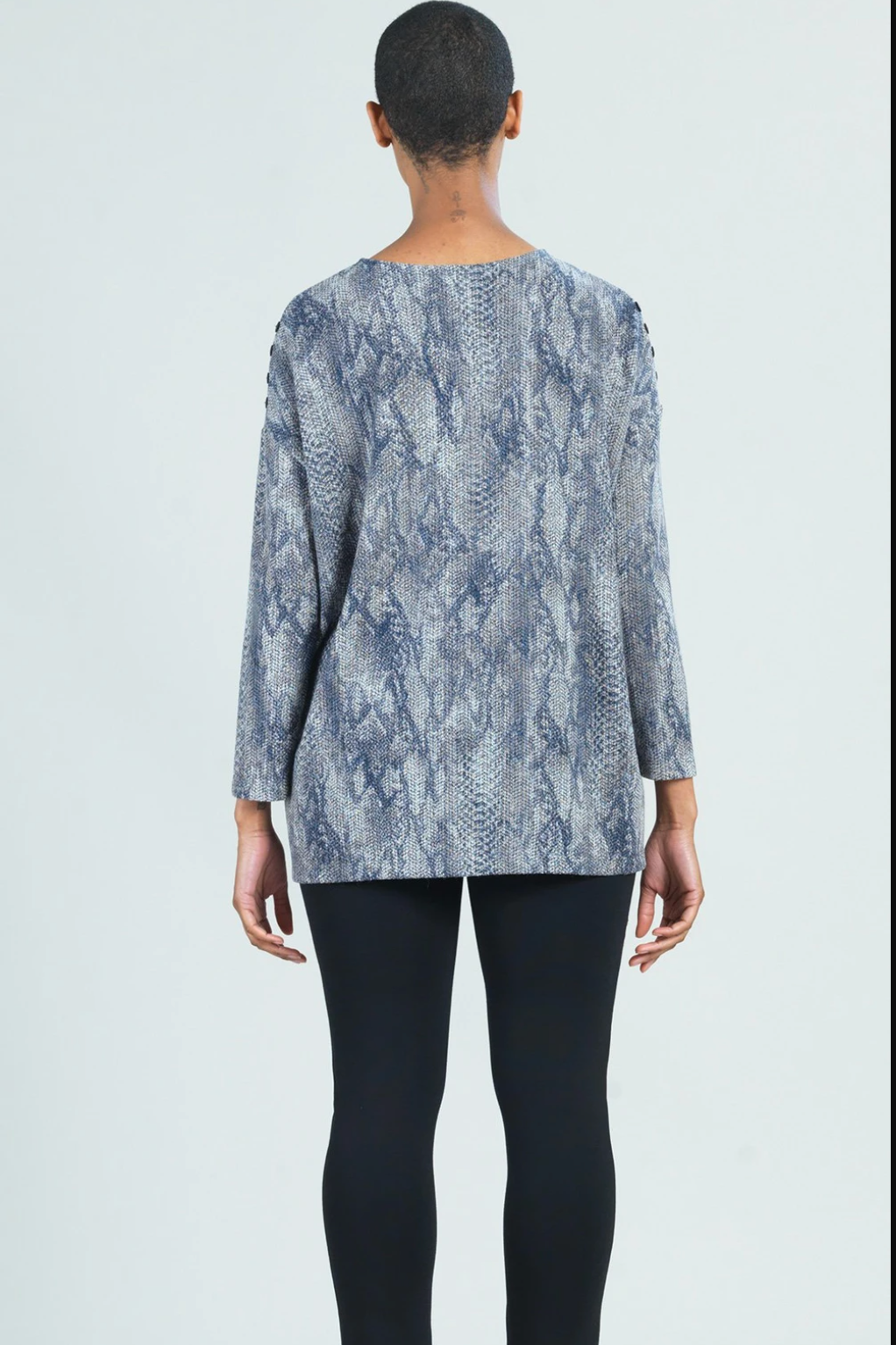 Waffle Knit Python Stitch Button Shoulder Sweater Tunic