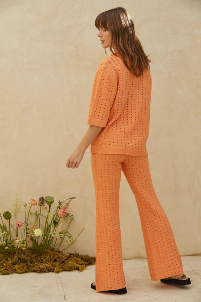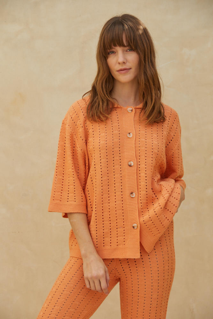 Knitted Sweater Acrylic Crocheted Button Down Collar Neck Short Sleeve Top
