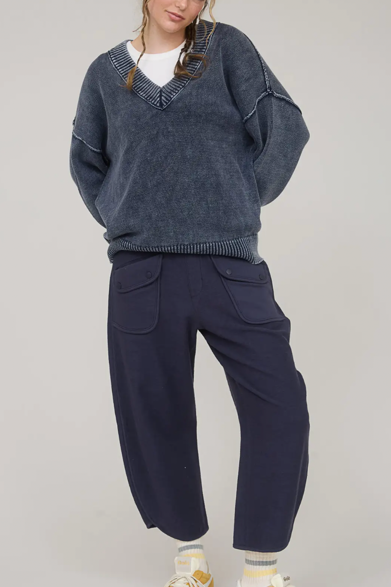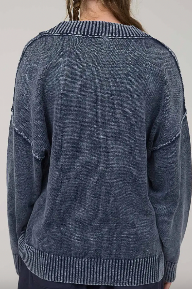 Washed V Neck Long Sleeve Oversized Knit Sweater