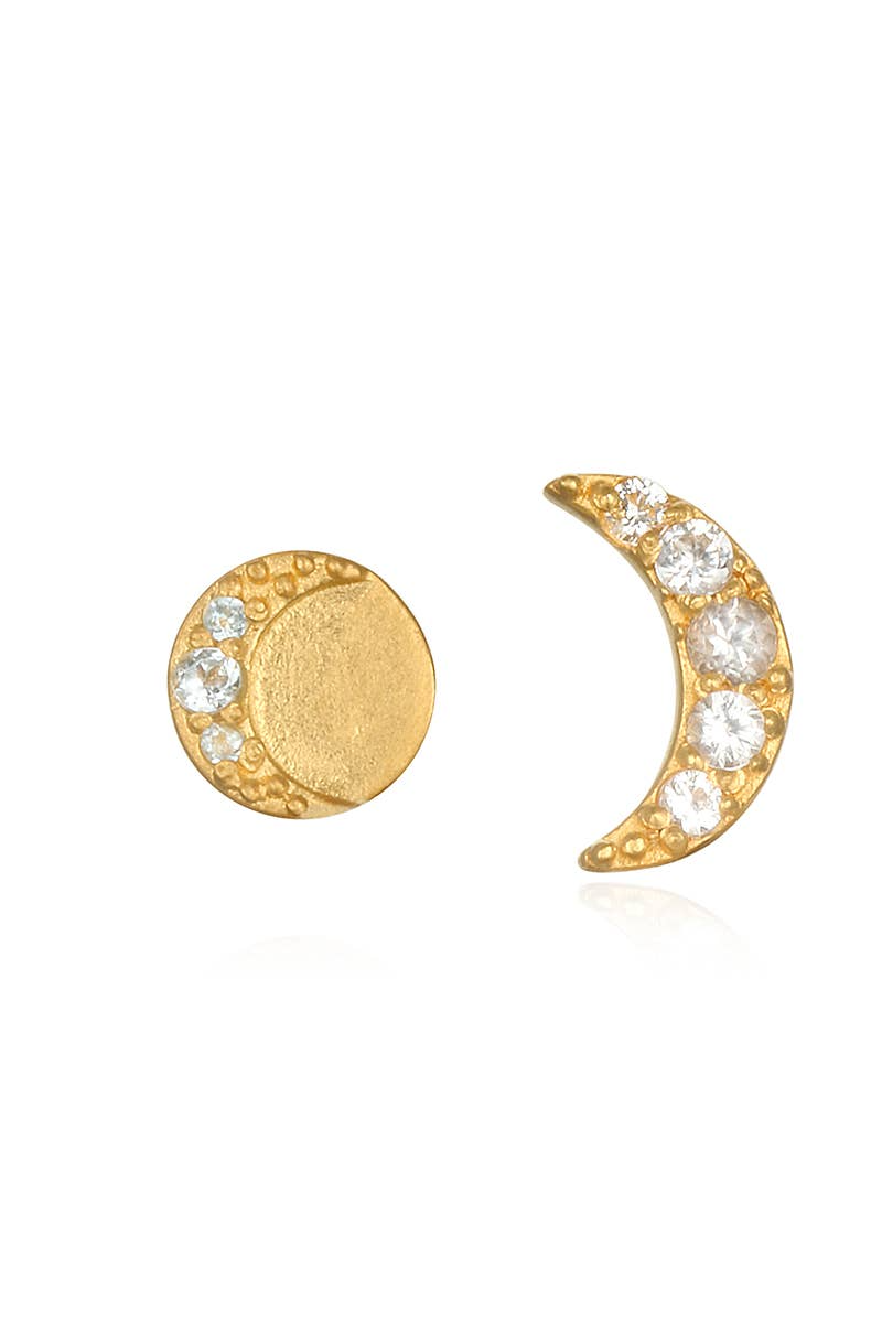 Soothe your soul with the healing warmth of the sun; awaken your dreams by the beautiful light of the moon. Stud earrings with a sun—symbol of vitality, leadership and life—and moon for nourishment, protection and the goddess are accented with white topaz, stone of individuality, creativity and awareness.