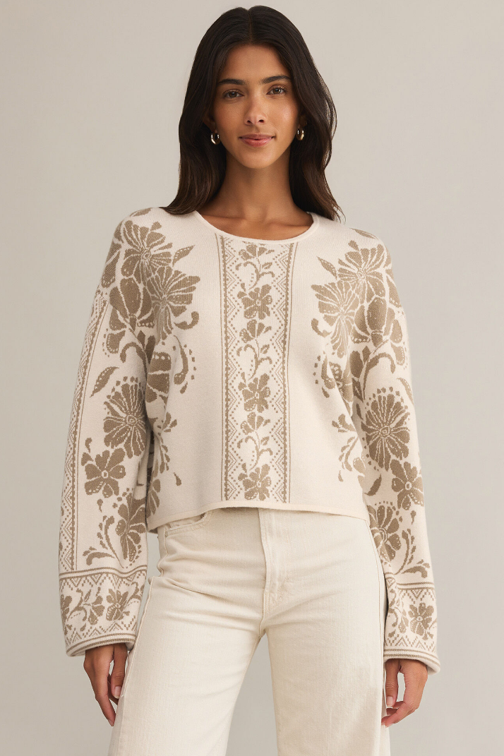 The Yoko is captivating with its beautiful floral intarsia graphic. This sweater also features a crew neckline, is a midweight material, and has a regular fit.