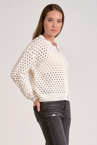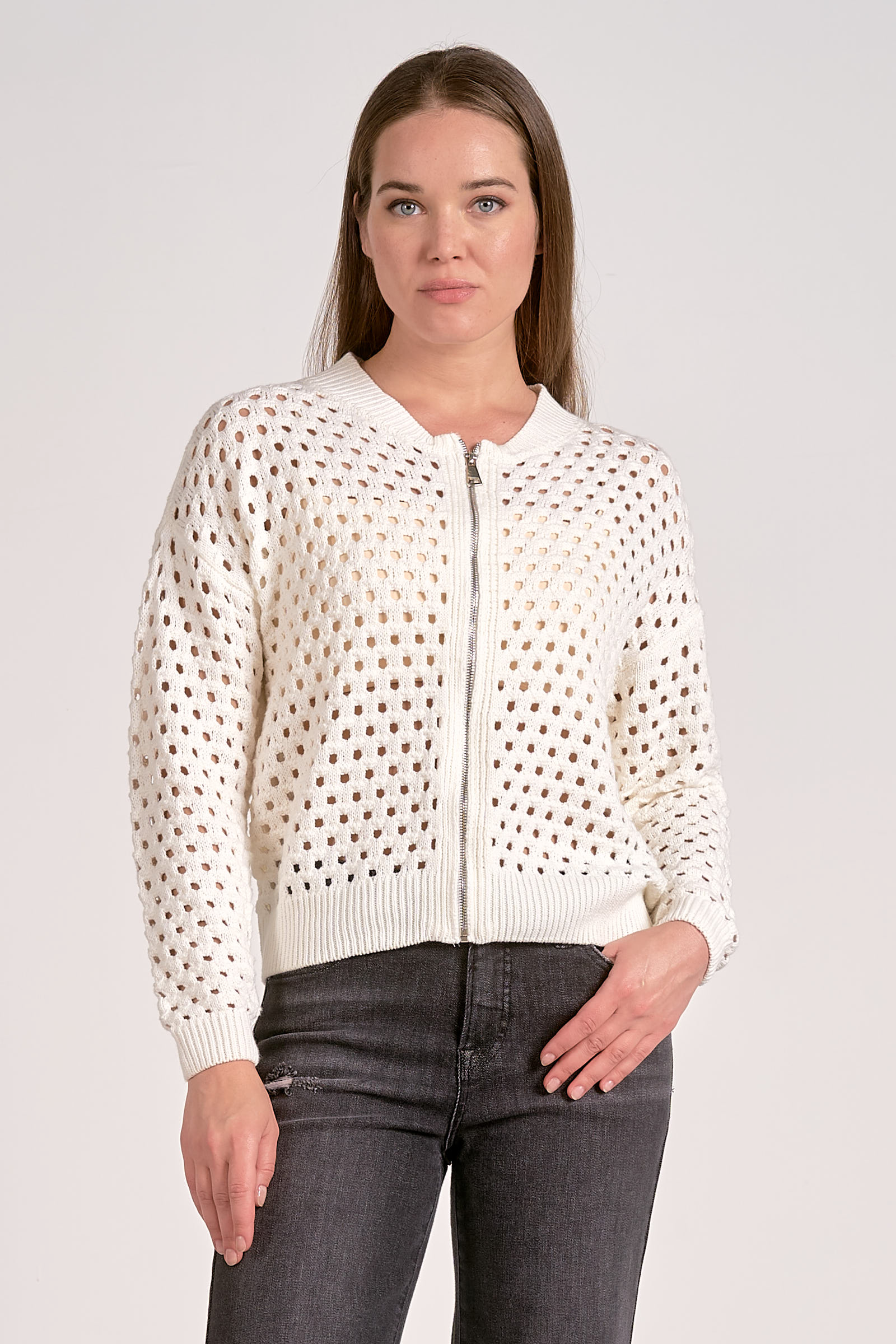 Light and airy. This zip front sweater can be worn alone as a top or added on as a layering sweater piece.